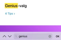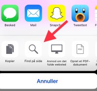 Først trykker du på den lille blå firkant med en pil op nede i bunden af skærmen, og så trykker du på knappen “Find på side”.