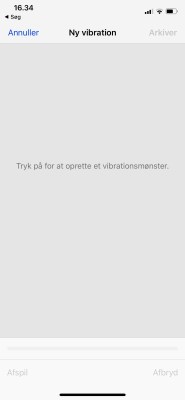 Eller du kan lave dit eget vibrationsmønster ved at trykke på Speciel>opret ny vibration og så tromme/trykke her: