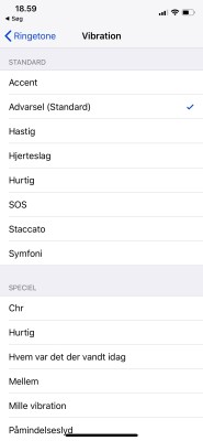 Her kan du så vælge mellem forskellige vibrationsmønstre: