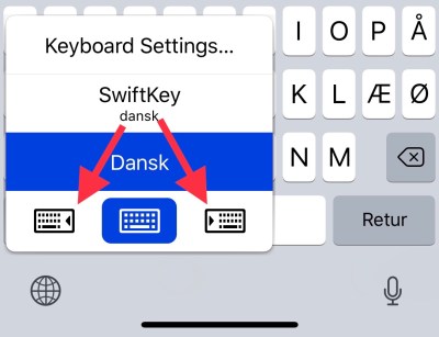 Man kan flytte tastaturet til enten højre eller venstre side, så man lettere kan nå med sin tommelfinger.