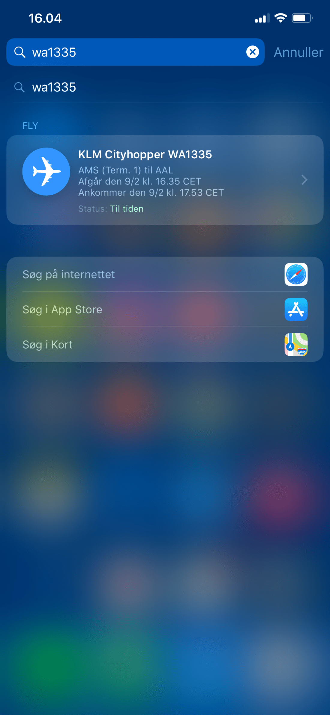 Det var smart: hvis du vil vide om et fly ankommer til tiden, kan du bare taste flynummeret i Spotlight (træk ned fra dit homescreen), og wupti