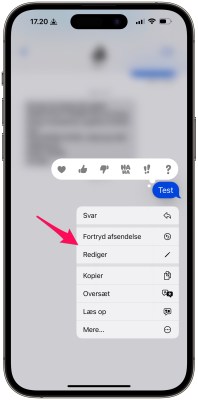 Er man kommet til at sende en besked med stavefejl eller én af der beskeder hvor auto korrekt er gået helt galt, så kan man faktisk både enten redigere eller helt fortryde sin besked.