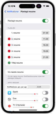 Du kan mindske antallet af forstyrrelser i løbet af dagen ved at indstille, at dine notifikationer skal leveres som det Apple kalder et resumé . Du kan vælge, hvilke notifikationer der skal med i resuméet, og hvornår du vil modtage det.