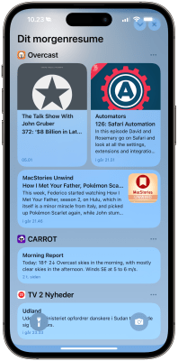 Hvis du bruger denne funktion vil et resumé se sådan ud på hjemmeskærmen: