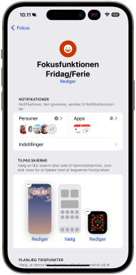 For eksempel kan du oprette et “arbejds- fokus” om morgenen fra kl. 8 til 16, og et “Personligt fokus” fra kl. 16 til når du går i seng.
