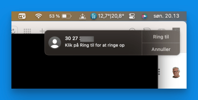 Du kan også tage imod opkald fra din Mac. Når du modtager et opkald, vises en notifikation øverst til højre på din skærm, hvorefter du kan besvare opkaldet direkte fra din Mac.