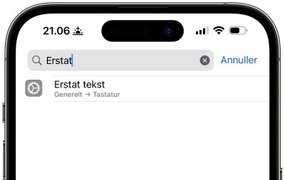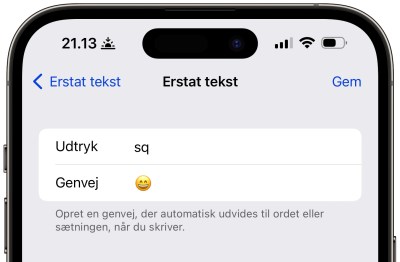 Du går ind i Indstillinger på din iPhone og søger på erstat tekst: