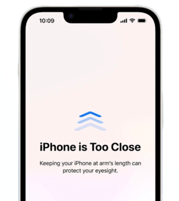 Funktionen bruger den samme TrueDepth-kamera, der driver Face ID, til at måle afstanden mellem skærmen og dine øjne. En fuldskærmsadvarsel opfordrer brugerne til at flytte deres enhed længere væk, hvis den har været holdt tættere på øjnene end 30 centimeter i en længere periode.