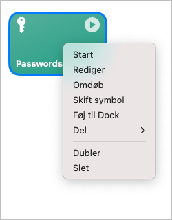 Denne genvej virker både til IOS og MacOS og kan kan placeres på iPhone eller iPad som en (hjemmeskærm) app. Og på Mac kan man f.eks. placere den i Menu-bjælken eller i sin dock.