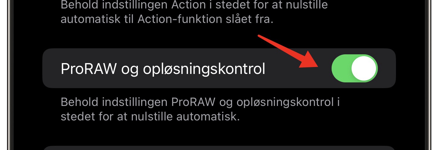 - Vælg formater og slå ProRaw og opløsningskontrol til