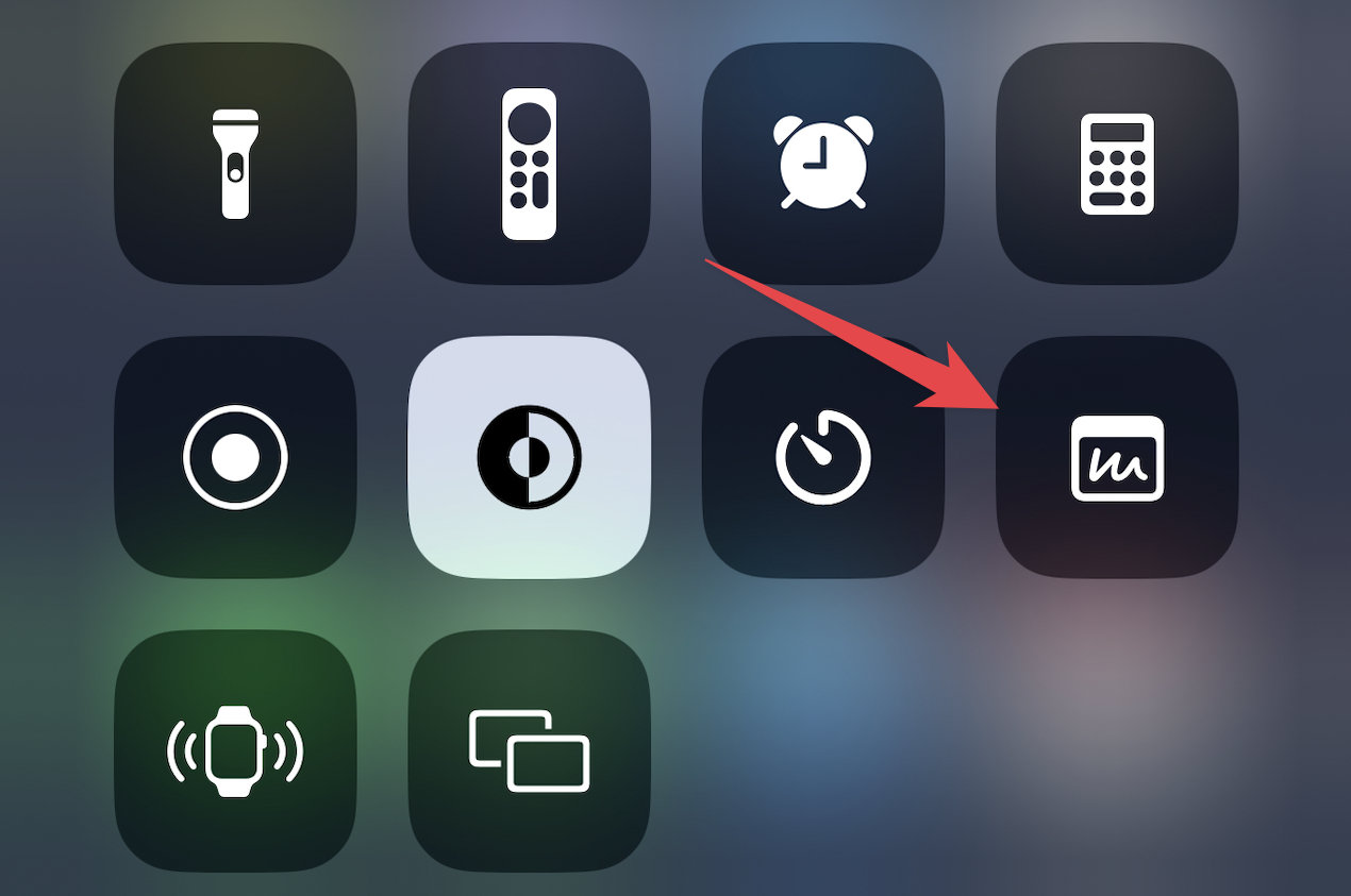 På din iPhone kan du også komme til hurtignoter i en ruf ved at åbne kontrolcentret. Du swiper din finger fra øverste højre hjørne af din iPhone og vælger dette symbol nederst på skærmen: