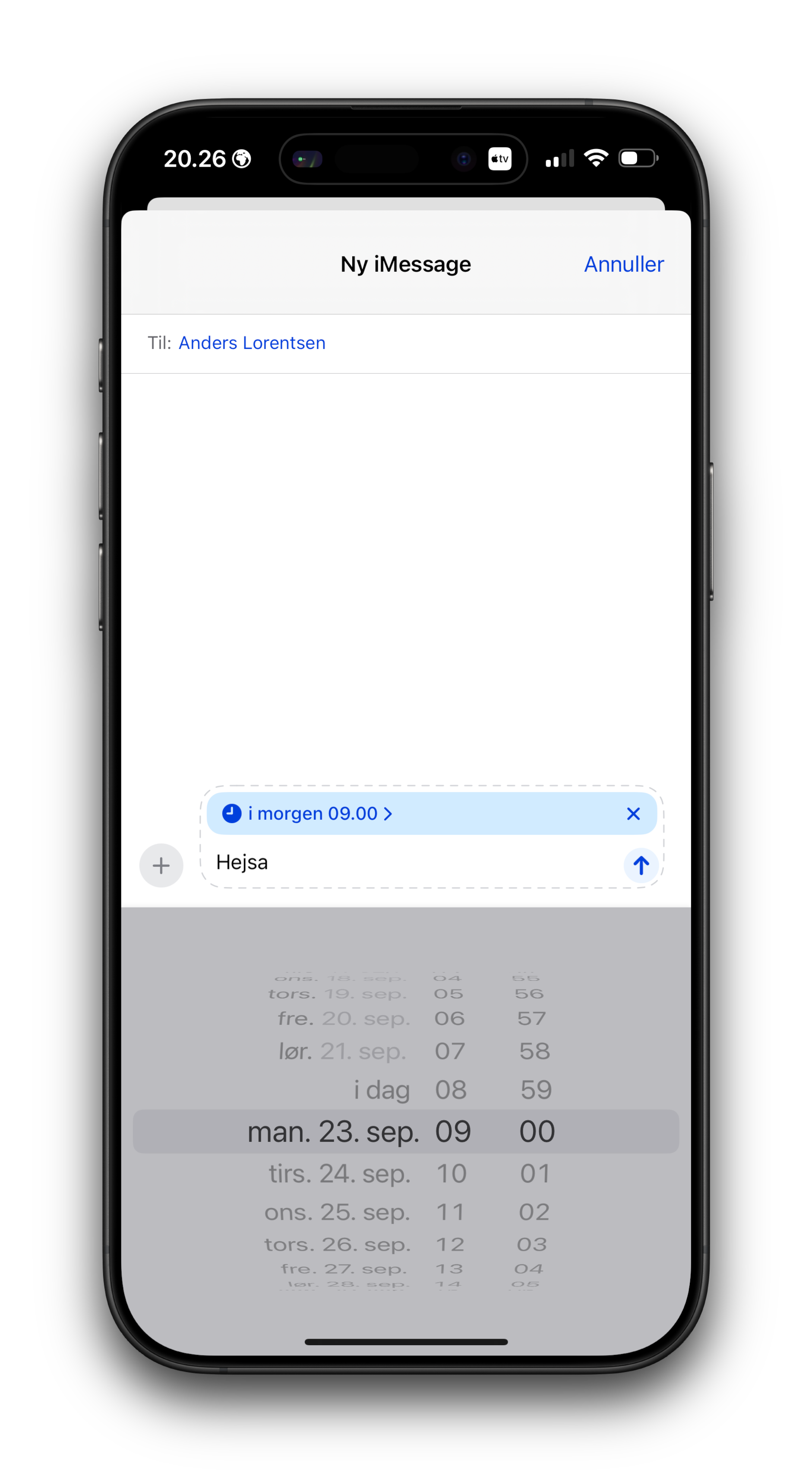 Nu kan du vælge at skrive din besked nu. og indstille hvornår den skal sendes: